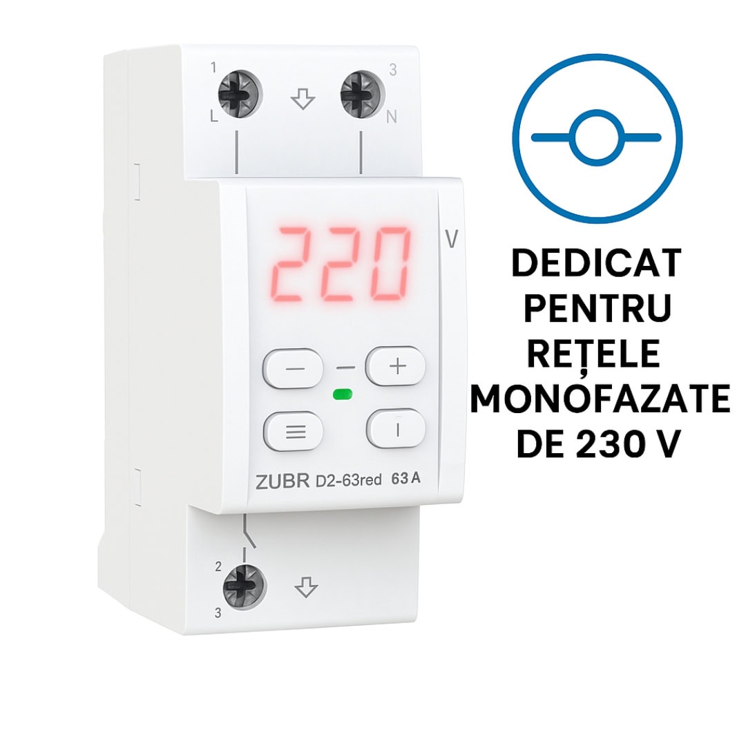 Vrei o protectie reala pentru aparatele tale, dintr-un Releu de protectie tensiune ZUBR D2 Red 40A Monofazat compact care opreste instant cand tensiunea iese din limite?