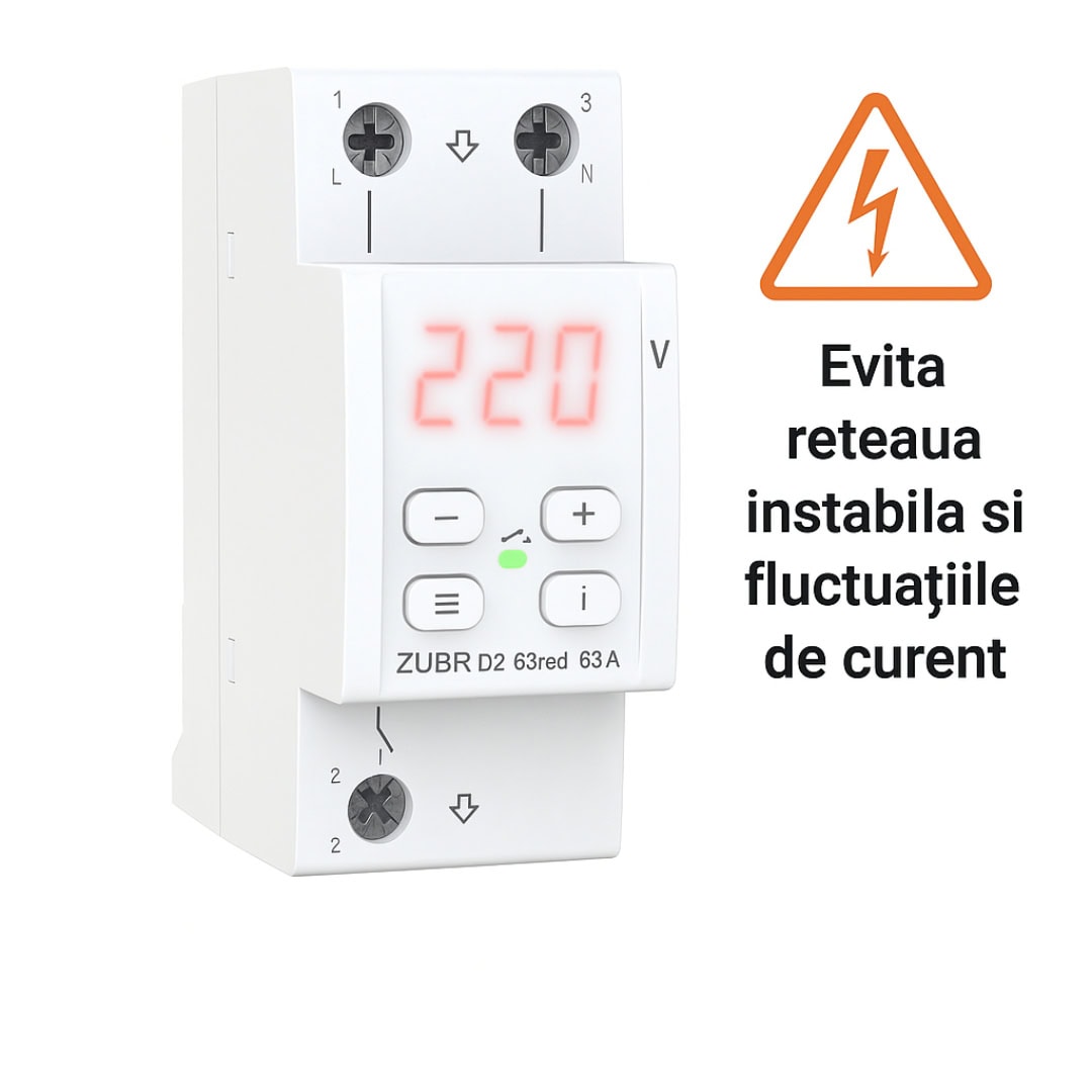 Cum scazi intreruperile inutile si pastrezi echipamentele in functiune cu un Releu de protectie tensiune ZUBR D2 Red 40A Monofazat pe care il poti controla tu?